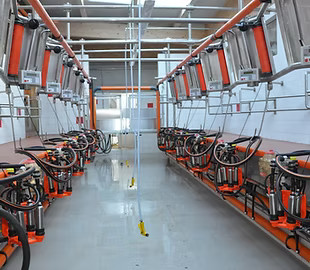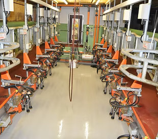 Fischgrat Melkstand in stützenfreier Niro Ausführung